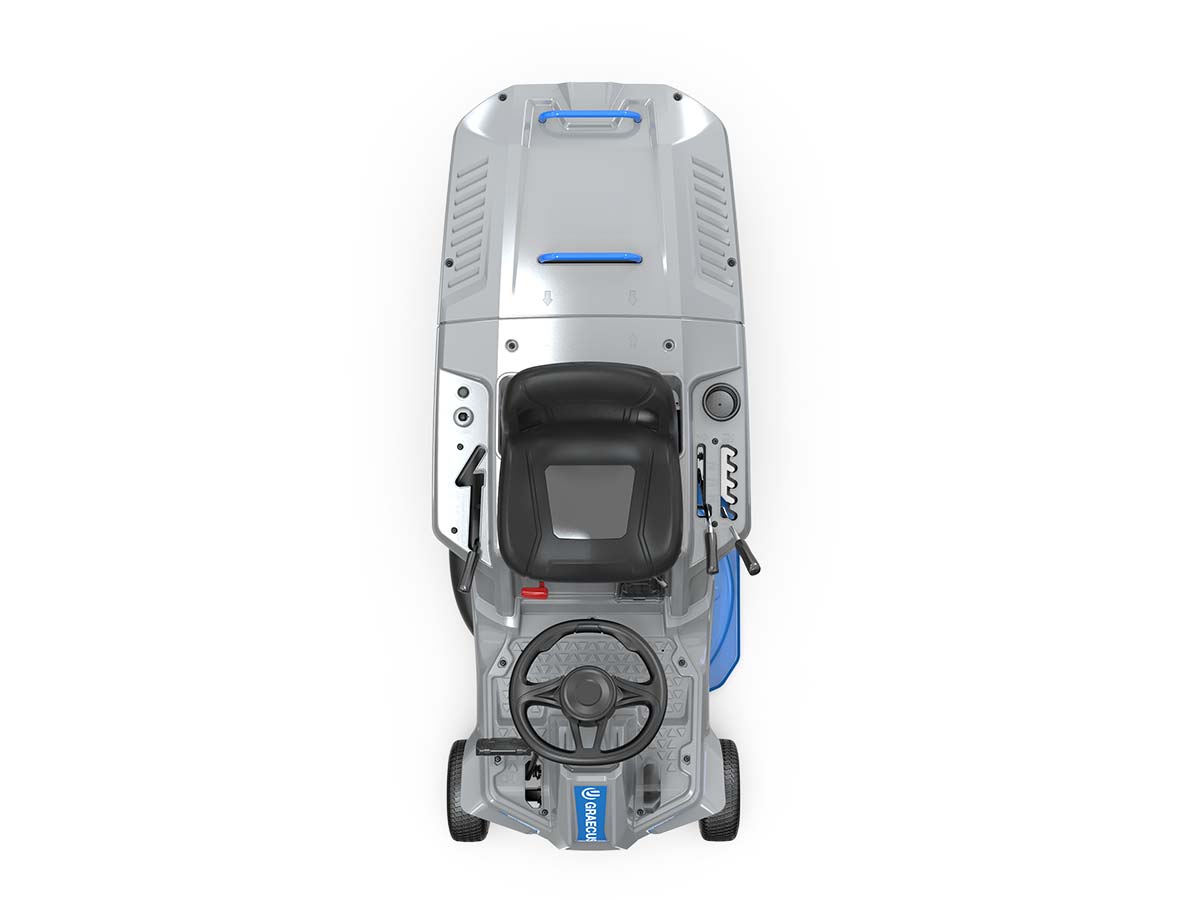 - Ρυθμιζόμενο κάθισμα με διακόπτη ασφαλείας (seat switch) για άμεση διακοπή αν σηκωθεί ο χειριστής.